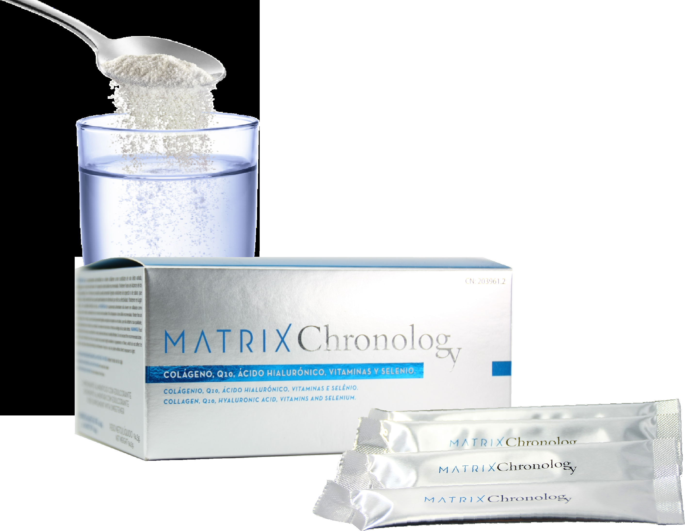 Se presenta con 21 monodosis de granulado que se disuelve en medio vaso de agua y se toma por las mañanas, durante 1-2 meses. Los resultados empiezan a ser visibles a los 10 días. Se aconseja para mujeres y hombres a partir de 30-35 años, que quieran mejorar la estructura y aspecto de su piel. También se recomienda después de tratamientos médico-estéticos o quirúrgicos, porque mejora los resultados. THR Medical Products formula Matrix Chronology, que prescriben médicos estéticos, su precio es de 45 € y se puede comprar online en https://lipodieta.com/tienda/matrix/.